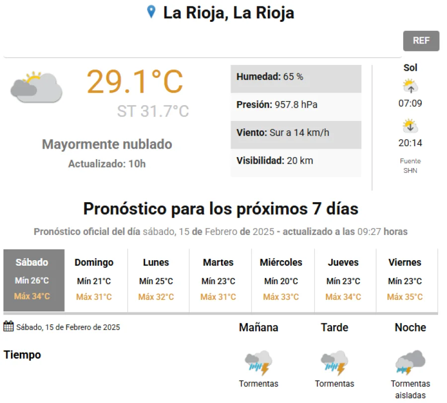 Agrandar imagen Enviar Imprimir Sábado con probabilidades de lluvia Unirme al canal de Whatsapp de "Nueva Rioja"