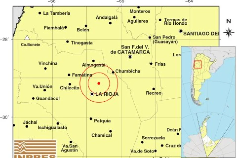 Según lo informado por el Instituto Nacional de Prevención Sísmica (INPRES), el sismo fue a las 11:04 horas de este miércoles, con epicentro a 35 km al NE de La Rioja; 117 km al SO de San Fernando del Valle de Catamarca; 52 km al SO de Chumbicha -29.140 (lat) -66.650 (long).