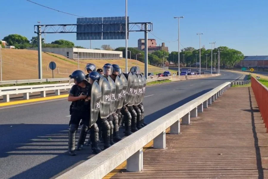 En ese momento la Policía avanzó hacia el foco del conflicto y despejó la zona con disparos de bala de goma y lanzamiento de gases lacrimógenos. Ante ese escenario de tensión máxima, el móvil radial debió resguardarse del embate policial y se desataron corridas múltiples en el lugar.