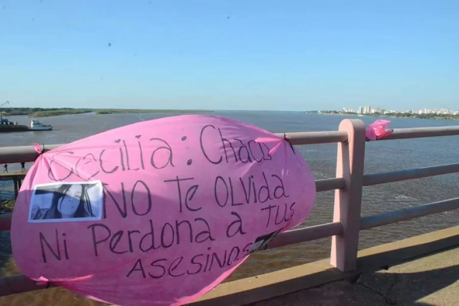 Pasadas las 16, la madre de Cecilia cruzó el puente corriendo. Lo hizo vistiendo una remera de la Selección Nacional estampada con el rostro de su hija y una leyenda que pide “Justicia”. La arengó una multitud al grito de: “¡Fuerza, Gloria. Fuerza!”. Sobre el barandal del viaducto, los manifestantes ataron telas y banderas de color rosa con algunas inscripciones: “Cecilia, Chaco no te olvida ni perdona a tus asesinos”, decía una. Otra se preguntaba: “¿Cecilia dónde te mataron?”. Es que, a un mes de la desaparición y presunto femicidio de la joven, sus restos aun no fueron encontrados.