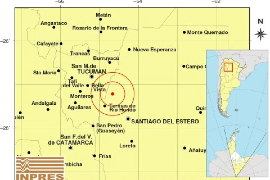 El Instituto Nacional de Prevención Sísmica (INPRES) reportó que el epicentro del temblor, ocurrido a las 9.48, se ubicó ocho kilómetros de profundidad, a la vez que detalló que el fenómeno llegó a percibirse hasta en zonas de Tucumán que limitan con Santiago del Estero.
