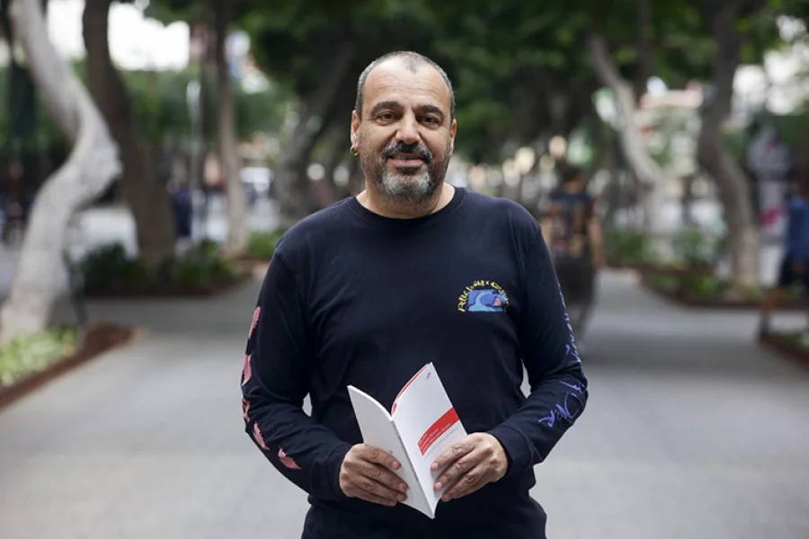 NACIÓ Y VIVE EN LAS PALMAS DE GRAN CANARIA, ESPAÑA. HA PUBLICADO MÁS DE 30 LIBROS DE POESÍA ENTRE LOS QUE SE DESTACAN: “COMO UN LEÓN DE PIEDRA EN EL ARQUEOLÓGICO DE BAGDAD”, “DONDE PRÍNCIPES Y BESTIAS”, “EL DEL HOMBRE QUE BEBIÓ CON DYLAN THOMAS Y OTROS SONETOS”, “COMO PASA EL AIRE SOBRE EL LOMO DE UNA BESTIA”, “LOS VERSOS PERDIDOS DEL CONTRAMAESTRE DEL ARCA”, “COSER PARA LA CALLE”, “DIARIO DEL HOMBRE LOBO Y OTROS POEMAS CARNÍVOROS (ANTOLOGÍA DE POESÍA AMOROSA)”, “SIN MONEDAS PARA LOS OJOS DEL HÉROE”, “EL DON DE LA POBREZA”, “LOS BUFONES DE DIOS”. EN 2016 LA EDITORIAL SEVILLANA RENACIMIENTO PUBLICÓ SU ANTOLOGÍA SALIR RANA. HA OBTENIDO IMPORTANTES DISTINCIONES LITERARIAS, COMO LAS DE FRAY LUIS DE LEÓN, CIUDAD DE LAS PALMAS, CIUDAD DE TUDELA, GIL DE BIEDMA, PEDRO GARCÍA CABRERA O TOMÁS MORALES. EN 2017 SE LE CONCEDE EL PREMIO NACIONAL DE POESÍA JOSÉ HIERRO. EN 2019 OBTIENE EL PREMIO INTERNACIONAL DE POESÍA FLOR DE JARA. POEMAS SUYOS HAN SIDO TRADUCIDOS AL PORTUGUÉS, ITALIANO, ESLOVACO, HÚNGARO, FRANCÉS E INGLÉS. RECIENTEMENTE FUE GALARDONADO CON EL 25º PREMIO INTERNACIONAL DE POESÍA GENERACIÓN DEL 27 POR ‘LOS GORRIONES CONTRARREVOLUCIONARIOS (Y OTROS POEMAS)”.