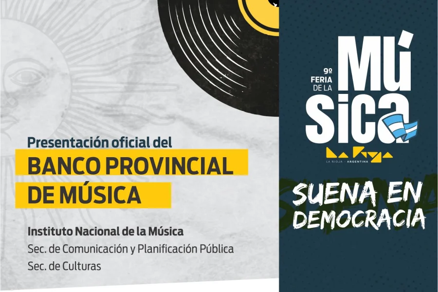 En el marco de la Feria de la Música 2023 La Rioja suena en democracia, el Gobierno de La Rioja, a través del Ministerio de Turismo y Culturas, Secretaría de Culturas, lanzará el Banco de Música Provincial, una herramienta de acceso gratuito y federal que tiene por objetivo fomentar la inclusión de todos los estilos musicales que pertenecen a artistas de nuestro territorio. Su creación resulta de vital importancia para la construcción del derecho a la difusión para las diversas expresiones musicales que existen en nuestra provincia.