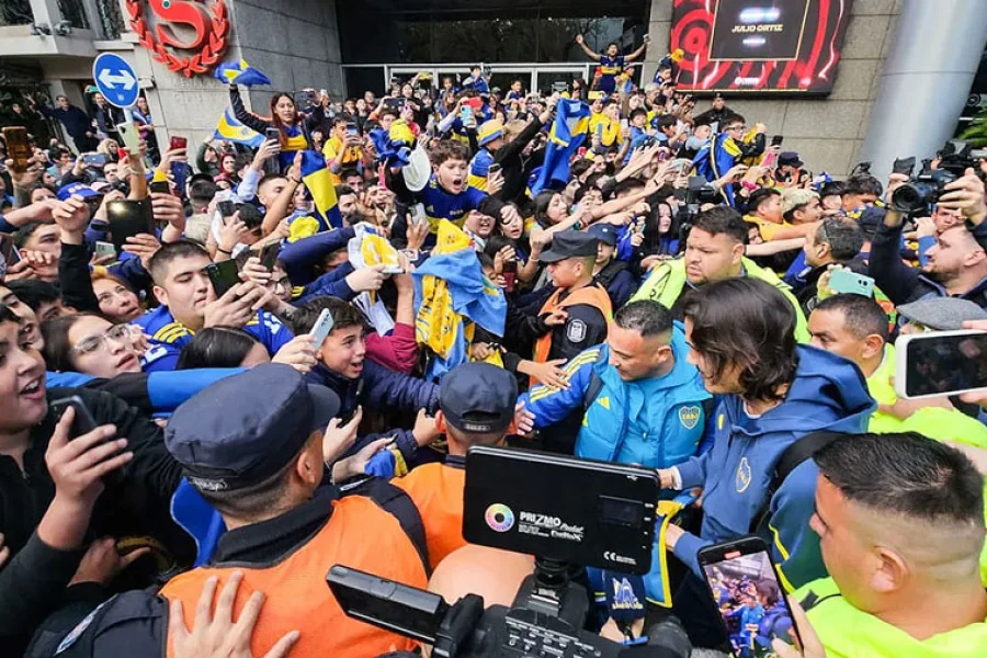 Los fanáticos arrojaron pirotecnia, bengalas y entonaron cánticos con la presencia de instrumentos que le pusieron la banda sonora a la llegada del plantel Xeneize. Y además tuvo a Edinson Cavani como el gran protagonista: fue el más requerido por los hinchas.