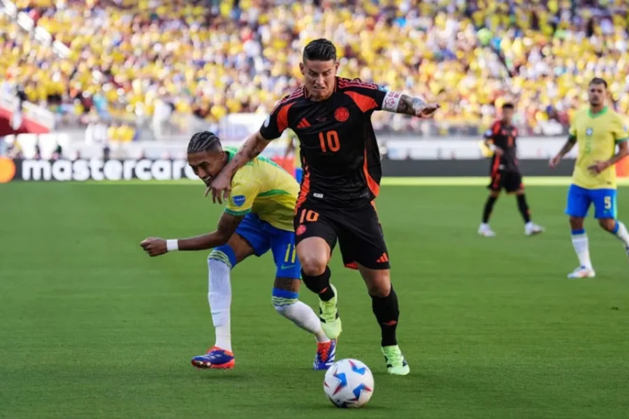 Como era de esperar bajó la intensidad en la parte complementaria. Pero, si bien a menor ritmo, los dos siguieron siendo bastante agresivos con la pelota en los pies. Pudo desnivelar Colombia con dos cabezazos de Córdoba y también lo pudo hacer Brasil con un tiro libre de Raphinha que se fue cerca. Pero pasada la media hora las cosas seguían igualadas.