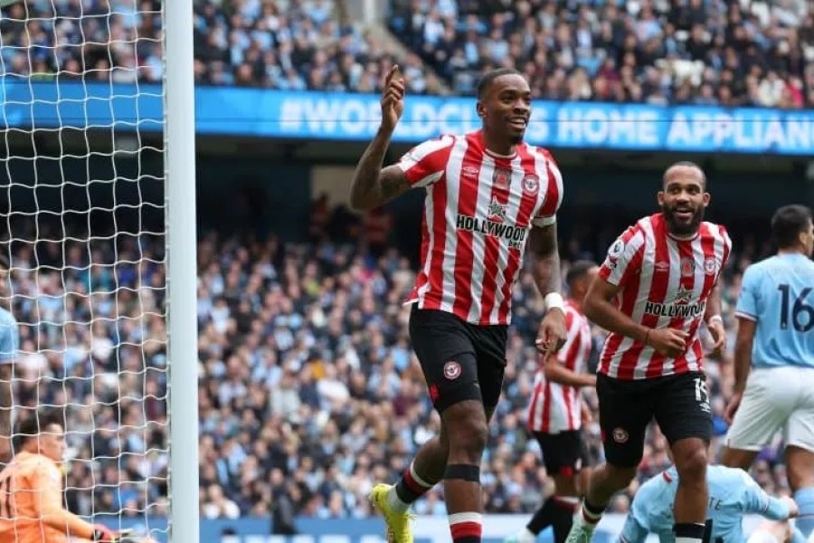 Los diez minutos adicionados que dio el árbitro que le sirvieron a Ivan Toney para acabar de desarmar al City de contra, con un gol (m.98) que no acabó en triplete por un despeje casi sobre la línea de De Bruyne, en los caóticos minutos finales de un City que llega en problemas a la pausa mundialista.