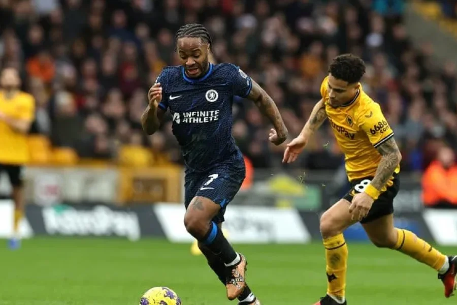 En un primer tiempo los de Pochettino dominaron los hilos y el tiempo del juego antes los Lobos, con Raheem Sterling fue quien se destacó y desaprovechó en los Blues. Pasada la media hora del encuentro, con un anterior tiro libre que se fue arriba del travesaño, el ex Manchester City presionó en la salida del local, se fue mano a mano contra el arquero, con dos compañeros suyos sin marca a su derecha -Palmer y Jackson-, y definió al arco, con mucho egoísmo, ante el achique de José Sá, que tapó el disparo. Era el 1-0 para el club londinense, oportunidad clara para ponerse en ventaja. A poco minutos del cierre, Hwang Heechan tuvo una chance de marcar, sin embargo su remate se fue por arriba del travesaño. En la última jugada, en otra mala salida del los Errantes, Cole Palmer sacó un zurdazo donde también mandó el balón por arriba del palo superior del arco.