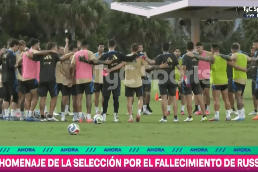 La Selección Argentina que dirige Lionel Scaloni se entrena en Miami de cara a los dos amistosos que tendrá ante Venezuela y Puerto Rico. En el medio de la práctica, el plantel conoció la noticia del fallecimiento de Miguel Ángel Russo, frenó todo y realizó un sentido minuto de silencio seguido de aplausos.