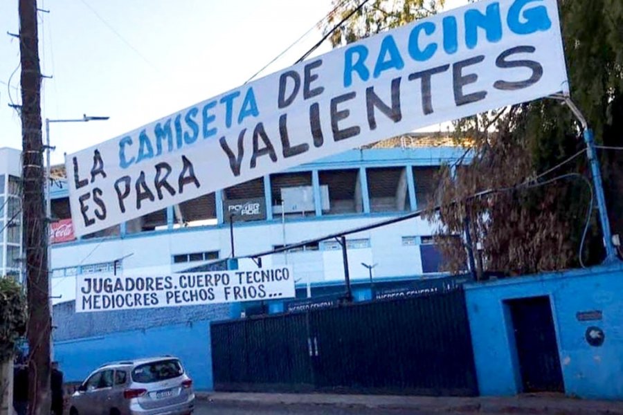 "La camiseta de Racing es para valientes", "Jugadores, cuerpo técnico, mediocres, pechos fríos" y "Los cobardes no hacen la historia" son los tres pasacalles que aparecieron colgados sobre el pasaje Oreste Omar Corbatta.