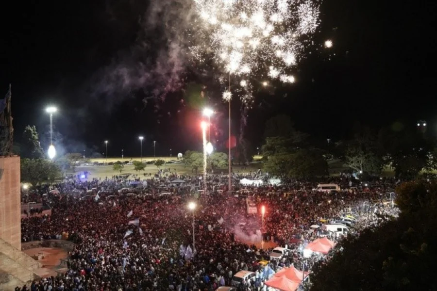 Como suele ocurrir en jornadas patrias como el Día de la Bandera o en más de una ocasión para manifestar ánimos de algún tipo, no podía ser sino la euforia desatada la que copara esta noche esa imponente estructura de cara al río Paraná.