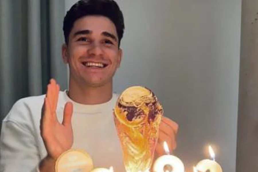 Julián Álvarez, campeón con el seleccionado argentino en Qatar 2022, cumple este martes 23 años y fue homenajeado por su familia con un torta especial decorada con el trofeo de la Copa del Mundo.