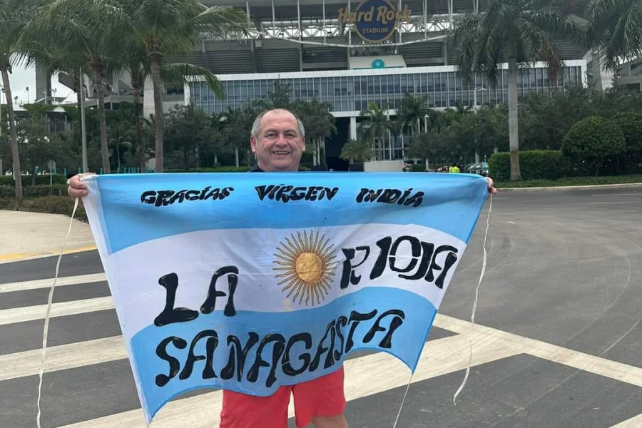 La bandera del Tesho, junto a la Virgen India de Sanagasta, de donde es oriundo Chicho González, estarán el próximo domingo en la final para alentar a Argentina, que espera festejar el bicampeonato.