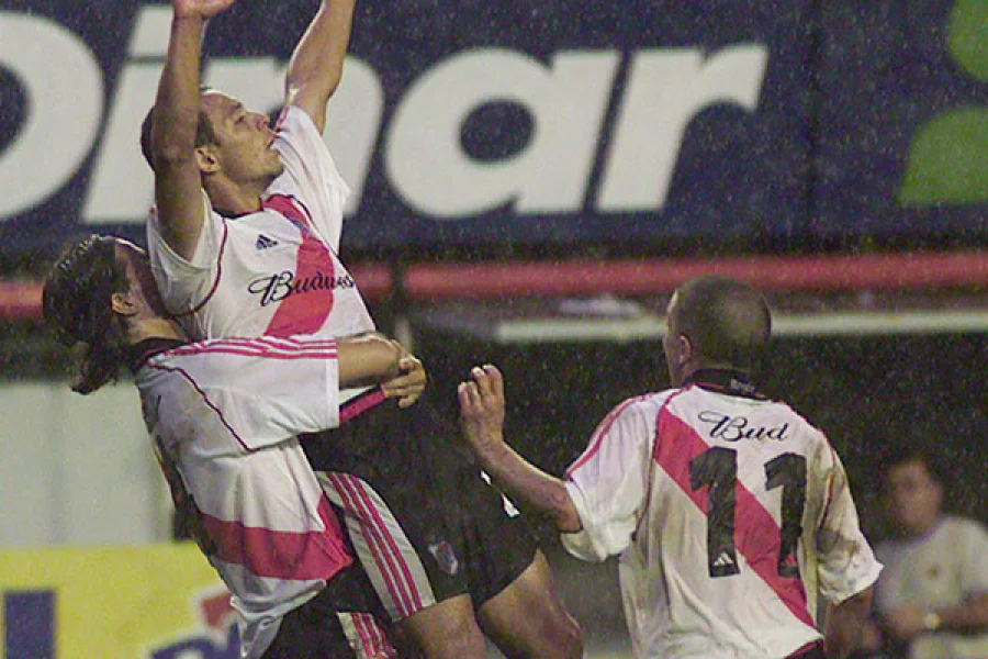 Condujo la jugada con su pierna hábil, tocó para Andrés D’Alessandro con la derecha y este abrió con Ariel Ortega que, de primera, habilitó al posadeño que eludió a Clemente Rodríguez y definió con una vaselina fenomenal por sobre la humanidad de Roberto Abbondanzieri, quien no tuvo nada que hacer para impedir el tercer tanto riverplatense en medio de una jornada totalmente lluviosa que pasó a la posteridad.