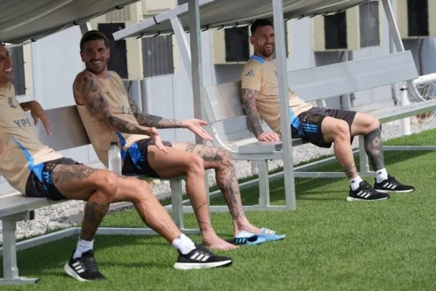 Al grupo se lo vio con buen semblante, en especial a Messi, Rodrigo De Paul y Ángel Di María, quienes se divirtieron un rato mientras estuvieron sentados en el banco de la cancha auxiliar. O al menos eso pudo apreciarse por las fotos oficiales que la Asociación del Fútbol Argentino subió a través de las redes sociales. Sonrisas, chistes y complicidad luego de lograr parte del objetivo.