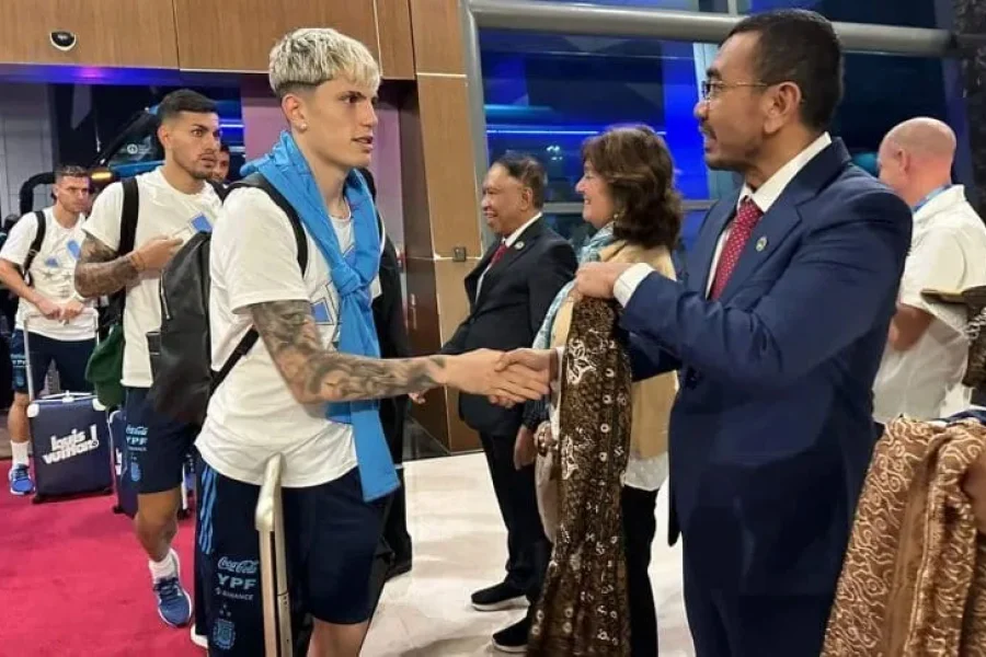 "¡Hola, Indonesia!", publicó la cuenta oficial del seleccionado nacional con imágenes de los futbolistas siendo agasajados por los locales, quienes les obsequiaron unas bufandas de tela típicas de la industria textil de la región. "Muchas Gracias Indonesia, a la Federación de Fútbol con su Presidente Erik Thohir, por tan cálido recibimiento a nuestra Selección Argentina. Estamos muy felices de estar aquí", posteó Claudio Tapia, presidente de la AFA.