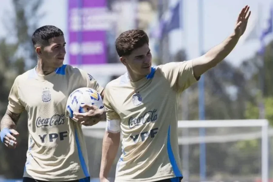 La práctica de este miércoles fue programada para antes de lo que será el viaje a Paraguay, posterior a la conferencia del entrenador. En el ensayo de fútbol reducido del martes, Rodrigo De Paul, Giovani Lo Celso, Enzo Fernández, Lionel Messi y Julián Álvarez jugaron juntos, en lo que parecía ser un indicio. Finalmente, en el martes Scaloni probó con un mediocampo en el que salió Lo Celso y entró Alexis Mac Allister, mientras que el Araña se mantuvo en el ataque junto con Lautaro Martínez. Así, el 4-3-3 podría ser el esquema definido, aunque si acaso Scaloni se inclinara por un mediocampo más poblado, todas las fichas están puestas en que el delantero de Atlético de Madrid se mantenga en el once titular.