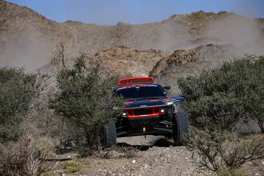 La baja de Ekström -rotura de suspensión trasera- ha dejado a Sainz y a Loeb en una duelo mano a mano, para la semana final de la carrera, que se puso en marcha esta mañana, después del día de descanso y preanuncia una vibrante definición entre titanes. También, enfrenta a dos equipos muy importantes de la especialidad, que jugarán con todo lo que tienen por la victoria y dos conceptos técnicos distintos. El español, dejó algo de tiempo en la parte final del tramo, cuando cambió una de sus ruedas que se bajó con una 'pinchadura lenta'.