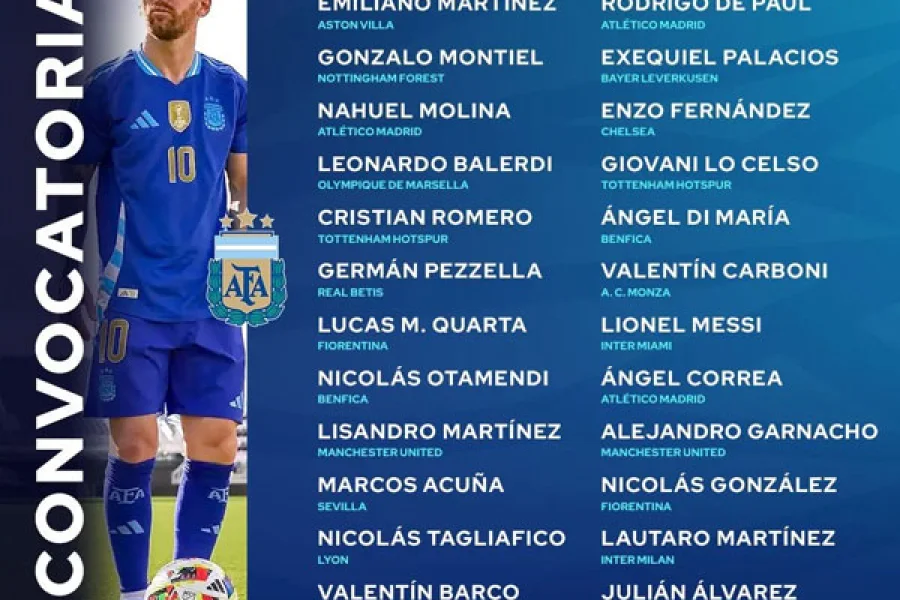 En cuanto a las novedades, hay uno que volverá a vestir la camiseta de la Selección y otro que, en silencio, se metió entre los 29 citados. El primero es el arquero del Ajax, Gerónimo Rulli, quien formó parte del equipo campeón del mundo en Qatar 2022.