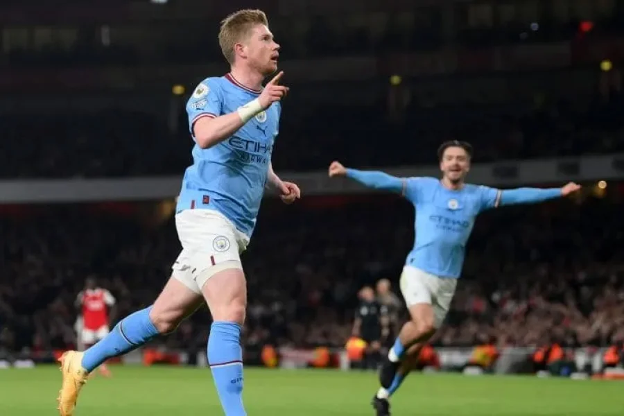El partido fue muy intenso, desde el principio hasta el final. Manchester City, obligado a ganar para alcanzar a Arsenal en la cima del campeonato, tomó la iniciativa en el arranque y se puso en ventaja gracias a un muy buen gol de Kevin De Bruyne. El belga aprovechó un grosero error en la salida de los Gunners y definió por encima del arquero Aaron Ramsdale.