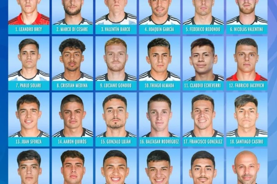 *Mediocampistas: Federico Redondo (Argentinos), Juan Sforza (Newell’s Old Boys), Valentín Barco (Boca), Cristian Medina (Boca), Ezequiel Fernández (Boca), Thiago Almada (Atlanta United de Estados Unidos), Claudio Echeverri (River), Baltasar Rodríguez (Racing) y Juan Nardoni (Racing).