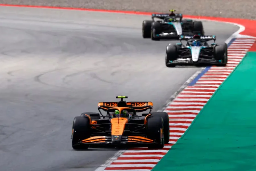 La competencia no entregó demasiadas emociones, pero el duelo que se robó la jornada fue el que terminó con el sobrepaso de Norris a Russell en el giro 35, luego de una lucha que transitó por varias curvas.