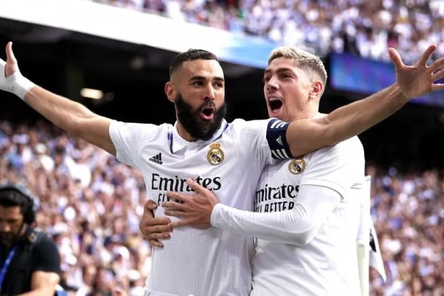 En el estadio Santiago Bernabéu, el campeón de España y de Europa borró de la cancha a Barcelona y encaminó su triunfo con los goles del francés Karim Benzema y el uruguayo Federico Valverde, a los 12 y 35 minutos del primer tiempo, respectivamente.