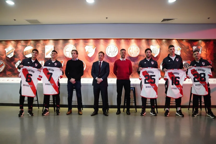 Si bien todos ya debutaron en los amistosos de pretemporada, los refuerzos de River tuvieron su presentación oficial en el el Salón de los Escudos del Monumental, con la camiseta y contando qué sienten por haber llegado al club, tal como viene sucediendo habitualmente en el club. Fue la primera vez que se pudo ver juntos a Felipe Peña, Federico Gattoni, Franco Carboni, Jeremías Ledesma y Adam Bareiro, los cinco que ya están. Junto a ellos, el presidente Jorge Brito, el vice Ignacio Villarroel y el técnico Martín Demichelis, les dieron la bienvenida...