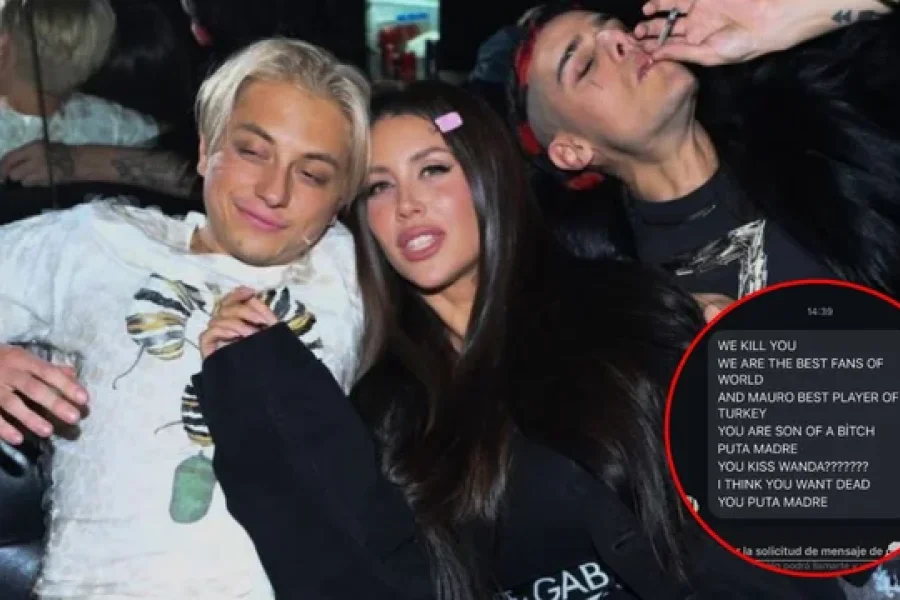El mensaje compartido por el cantante está en lo que pareciera ser un inglés no nativo y dice: “Te matamos. Somos los mejores fans del mundo y Mauro el mejor jugador de Turquía. Sos un hijo de puta. Puta madre, ¿besaste a Wanda? Yo creo que querés estar muerto”.