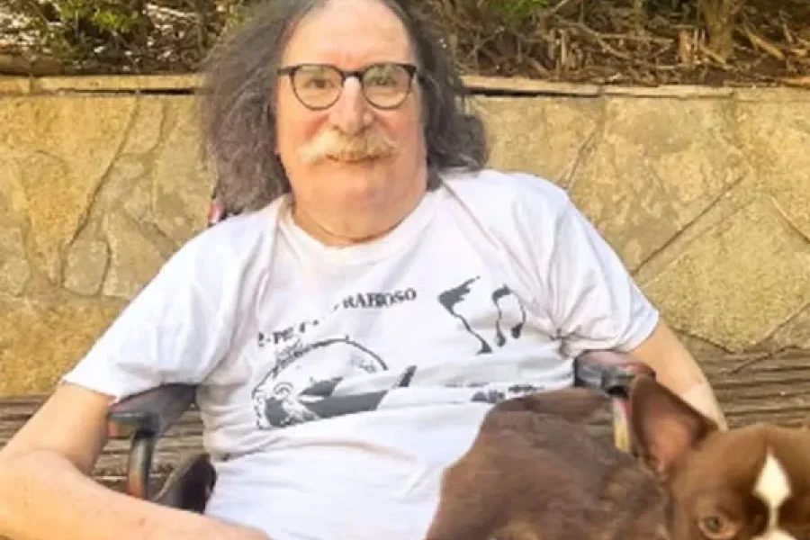La imagen fue publicada en la cuenta de Instagram del artista y se lo puede ver sentado en una silla de ruedas con un perrito sobre su falda, usando una remera con la foto de la portada de Pescado 2, el disco de Pescado Rabioso, la banda integrada por Luis Alberto Spinetta, David Lebón, Black Amaya y Carlos Cutaia, en al año 1973.