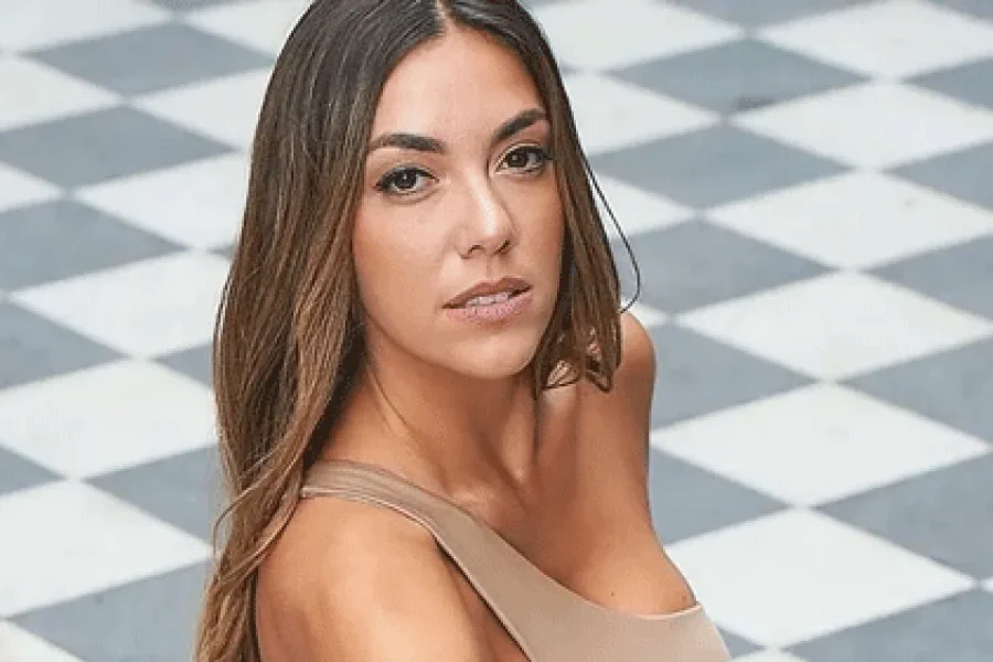 La bailarina se encuentra en las playas de Ibiza y para hacer ejercicio y tomar sol eligió una microbikini en color turquesa que combinó con un pantalón estampado nude con un estilo bohemio. El conjunto contó con un corpiño de moldería triangular y sujetado por cadenas. Sumado a su bronceado, presentó un look muy veraniego que lo culminó con un sombrero, uno de los accesorios favoritos por parte de las famosas.