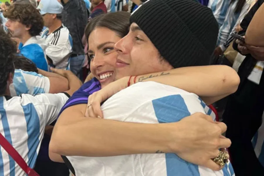 En un nuevo viaje juntos, de un itinerario que suma destinos tan variados como Madrid, Pinamar, Playa del Carmen y Qatar para presenciar algunos partidos de la Selección Argentina, la ex Casi ángeles volvió a demostrarle al cantante todo su amor con una sentida publicación en su cuenta de Instagram. Allí se la ve con los ojos cerrados y sonriente mientras él la abraza por la espalda y le da un beso en el cachete.