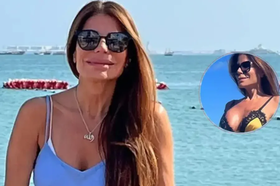 Zulemita lució un traje de baño dorado con corpiño estilo lencero. Los breteles de la parte superior eran negros y los de abajo del mismo tono que el resto de la prenda.
