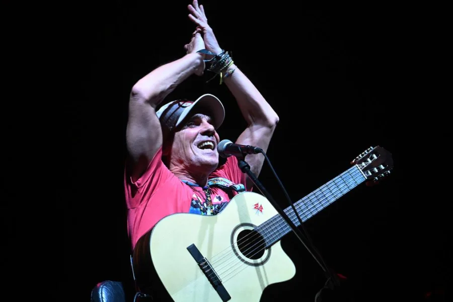 Desde una banqueta alta en el centro y una bandera que rezaba "Somos humedal" colgada en el fondo arremetió con "Vecinos del mar", "Todo llegará" y una seguidilla implacable de hits que comenzó con "Algundiavacaer", "Me llaman calle" y "Me Quedo Contigo (Si Me Das Elegir)".