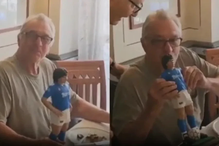 Sin embargo, el momento viral del día llegó después de que De Niro tomara con sus manos una estatua en versión pequeña de Diego Armando Maradona y la besara frente a la cámara que lo grababa.