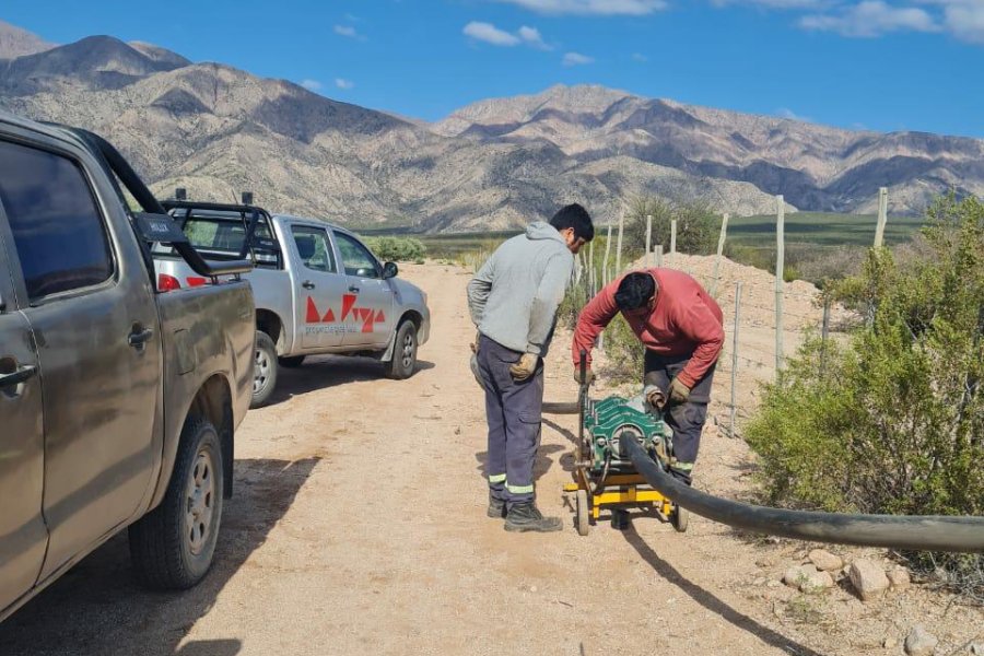 Veira detalló que se trata de “una cañería de noventa milímetros de diámetros, donde trabajamos en la fusión de la cañería para conectarla a la nueva perforación. Esta perforación va a estar funcionando hasta que podamos terminar una que estamos construyendo pero que por los tiempos que estamos no creo que lleguemos hasta los primeros calores, por eso nos anticipamos y conectamos este nuevo aporte”.