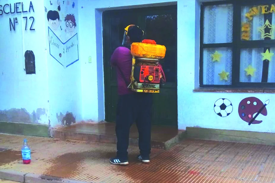 En esta ocasión en las diferentes Instituciones del Departamento Vinchina se realizó el proceso de fumigacion para control de plagas, como así también en la Localidad de Jagüe por parte de trabajadores Municipales de ese distrito quiénes recorrieron las instalaciones educativas y domicilios particulares para realizar esta tarea.