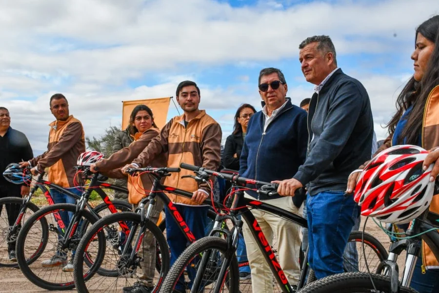 La entrega consistió en seis bicicletas tipo Mountain Bike rodado 29, con casco y equipamiento de seguridad, para que los guías de este sitio arqueológico y geológico puedan realizar excursiones en bici por los caminos y senderos del lugar.
