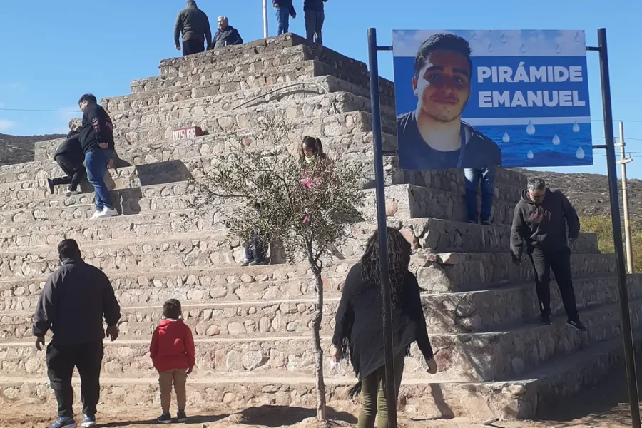 Cuando uno piensa en pirámides, lo normal es que las relaciones con países con el Antiguo Egipto o con las culturas de la Hispanoamérica precolombina, sin embargo en este pequeño pueblo de La Rioja podemos encontrarnos con esta magnífica obra, diseñada por Roque Garay, padre del cadete Emanuel Garay de 19 años, quien murió a raíz de un cuadro de deshidratación aguda grave e insuficiencia renal que le provocó una falla multiorgánica, luego de tortuosas condiciones de “entrenamiento” sufridas, junto a una decena de ingresantes más, durante el proceso de instrucción de la Escuela de Cadetes de la Policía de La Rioja. El fatídico hecho sucedió 10 de febrero de 2018.
