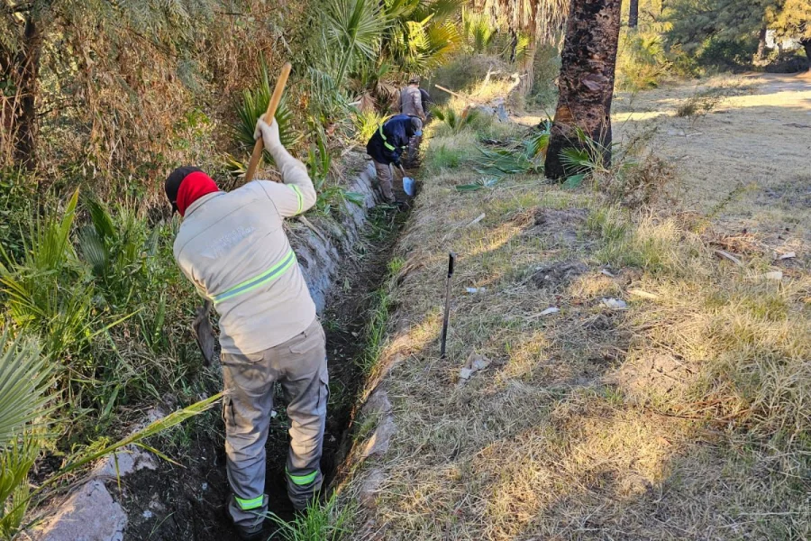 Además, se continúa con la limpieza del canal principal en calle Sarmiento, reforzando el compromiso de mantener en condiciones la infraestructura hídrica antes del inicio de la temporada de riego intensivo.