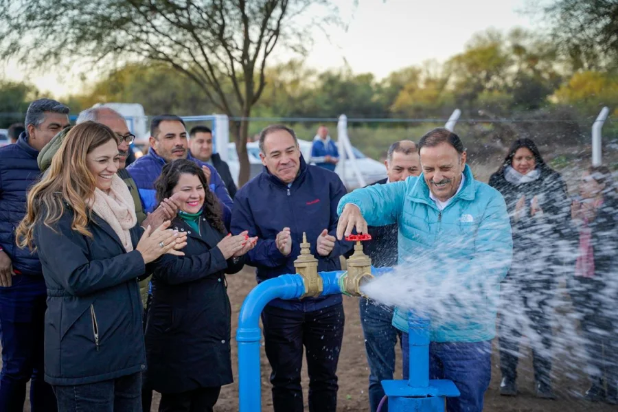 El gobernador Ricardo Quintela encabezó la inauguración de importantes obras hídricas en el distrito de Desiderio Tello, en el departamento Rosario Vera Peñaloza. Estuvo acompañado por la vicegobernadora Teresita Madera, el ministro de Agua y Energía, Adolfo Scaglioni, y autoridades municipales.