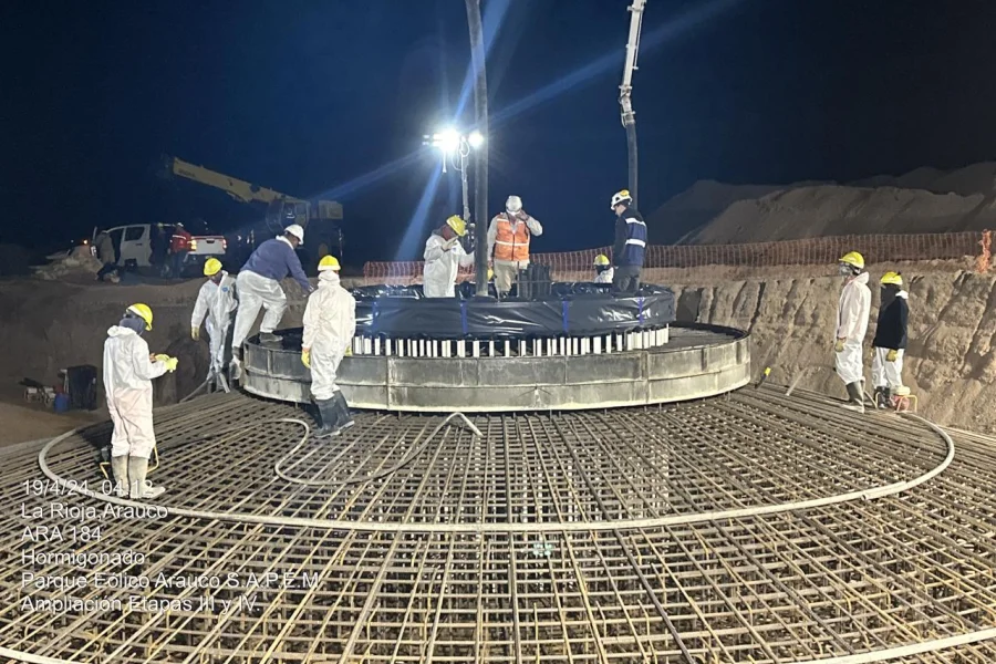 "La obra ya cuenta con 12 cimentaciones finalizadas de las 18 proyectadas para los nuevos aerogeneradores", destacó Rodrigo de la Vega, director de Obras del Parque Arauco. El ingeniero marcó el progreso del proyecto que se adjudicó a la empresa José J. Chediak Saica en octubre de 2023, por un contrato de 10.380.000 dólares más IVA.
