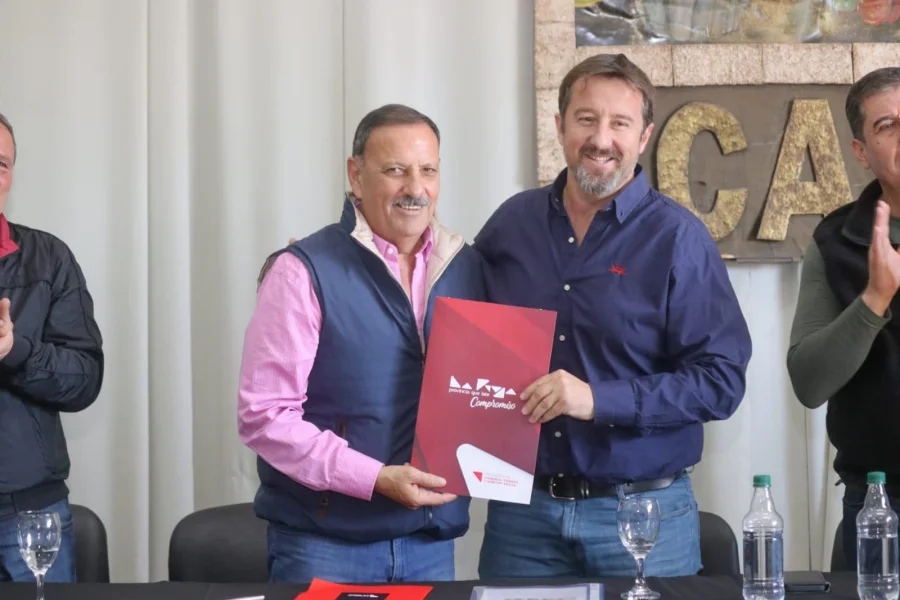 Ricardo Quintela, en su firme compromiso de poner al trabajo y la producción como ejes para el desarrollo de la provincia, rubricó en las instalaciones de la Cámara Riojana de Productores Agropecuarios, un convenio por medio del cual el Gobierno Provincial cede 1.500 hectáreas para la siembra de vegetales y hortalizas que sirvan como materia prima para abastecer a Agroandina.