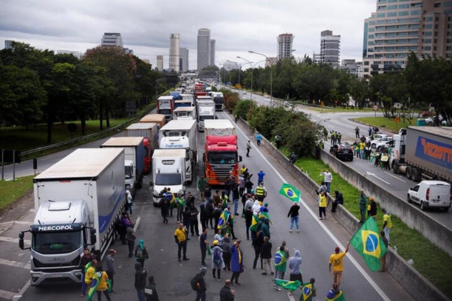 La Policía Federal de Carreteras (PRF) de Brasil reportó que manifestantes estaban bloqueando las carreteras parcial o totalmente en 156 lugares hasta este miércoles por la mañana, por debajo de los 190 de la noche anterior.