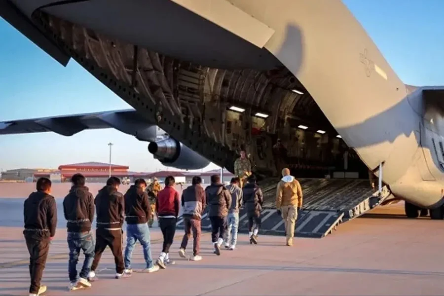 La deportación masiva de inmigrantes ilegales anunciada por el presidente Donald Trump en los Estados Unidos ya comenzó, y lo confirman las imágenes publicadas en X por la secretaria de prensa de la Casa Blanca, Karoline Leavitt, con los expulsados subiendo a un avión militar.
