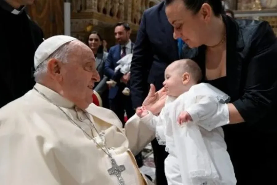 El Pontífice administró personalmente el sacramento del bautismo a los infantes, hijos de empleados del Vaticano que trabajan en la Santa Sede.