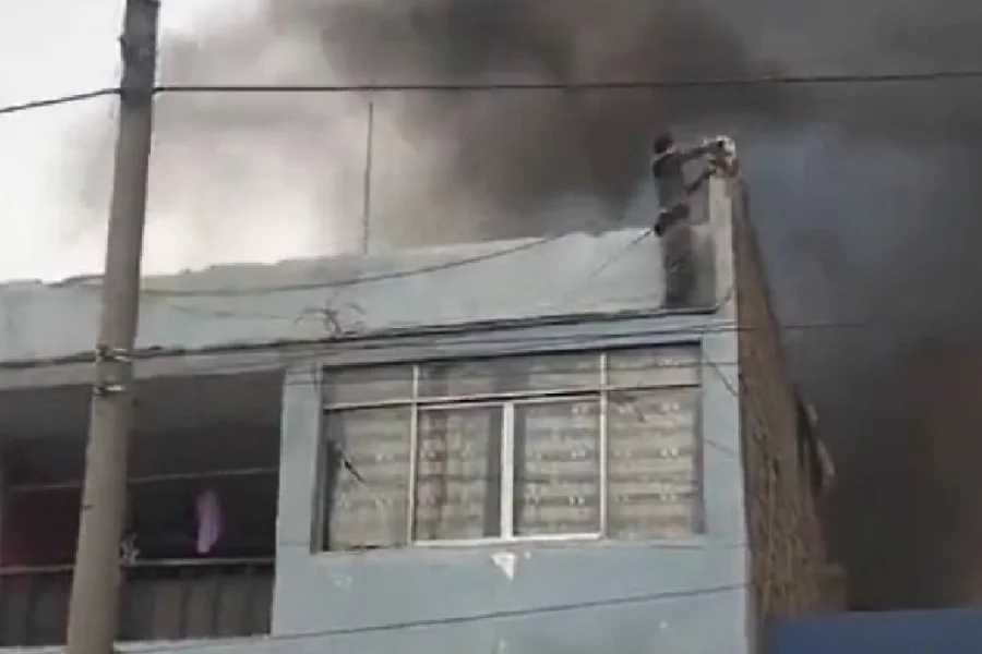 En medio de las arengas de los vecinos, el ciudadano extranjero terminó llegando a la parte alta del inmueble, donde uno de los perritos se había refugiado, pero estaba a punto de caer. Mientras tanto, en la parte baja, otro grupo de personas sostenía un colchón para recibir a los canes que el joven iba rescatando.
