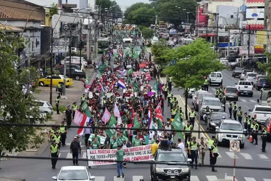 La marcha campesina, convocada bajo la consigna "por la tierra y la producción, contra todas las injusticias", cerrará este jueves las tres jornadas de movilizaciones en Paraguay, que arrancaron el martes con la protesta de trabajadores, jubilados y otras organizaciones y continúa este miércoles con una marcha de los partidos de la oposición.