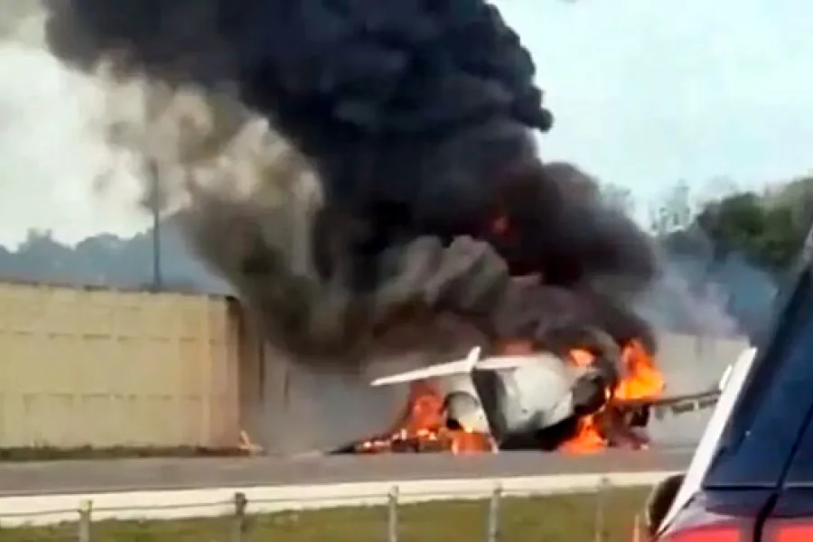 Se hicieron virales en las redes sociales nuevas imágenes del accidente en el que un avión privado de pasajeros con cinco personas a bordo se estrelló en una autopista de Florida, Estados Unidos, y colisionó con un vehículo en un trágico accidente el viernes 9 de febrero.