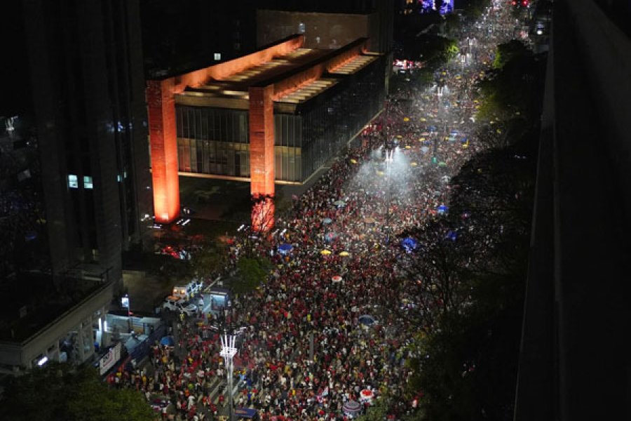 Tras conocerse la victoria de Luiz Inácio Lula da Silva en el ballotage de este domingo, una multitud se congregó en la avenida paulista, en San Pablo, para festejar el triunfo del líder del Partido de los Trabajadores (PT) en la elección más reñida en la historia del país.