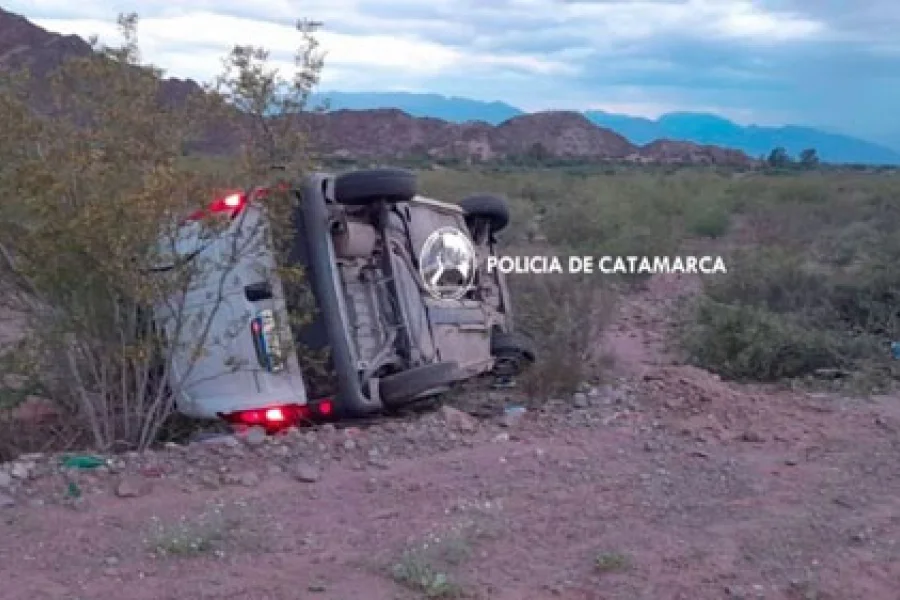 A las 10.45, de la mañana de ayer, en la ruta Provincial N° 34, en inmediaciones al ingreso de la Localidad de Palo Blanco, departamento Tinogasta, se registró un vuelco, protagonizado por un automóvil Chevrolet Corsa Classic, de color gris, conducido por Julio Argentino Mamaní (37), en compañía de María Magdalena Cardozo (27), un niño de 10 años y dos niñas de 4 y 3 años de edad respectivamente, quien por causas que son materia de investigación perdió el control del rodado y terminó volcando a un costado de la banquina.